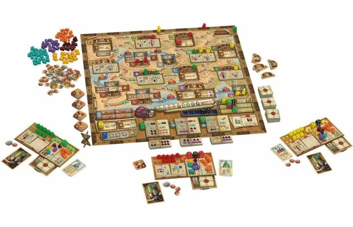 - 44 handelsposten (11 per spelerskleur(blauw, geel, groen en rood))
