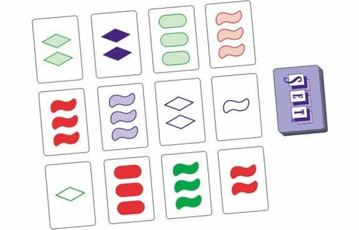Er liggen 12 kaarten met gekleurde symbolen op tafel. De symbolen hebben vier eigenschappen in drie variaties: een kleur, een hoeveelheid, een vulling en een vorm. Alle spelers zoeken nu tegelijkertijd naar een set. Een set bestaat uit drie kaarten, waarvan de variatie van de eigenschappen volledig gelijk is of helemaal verschillend.