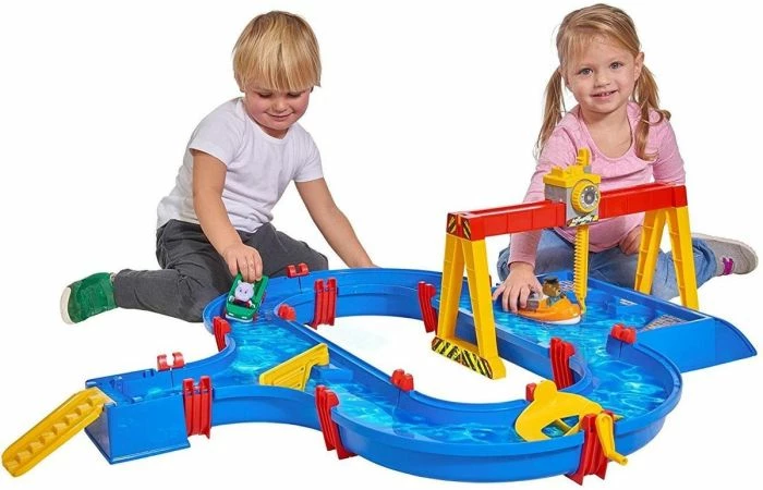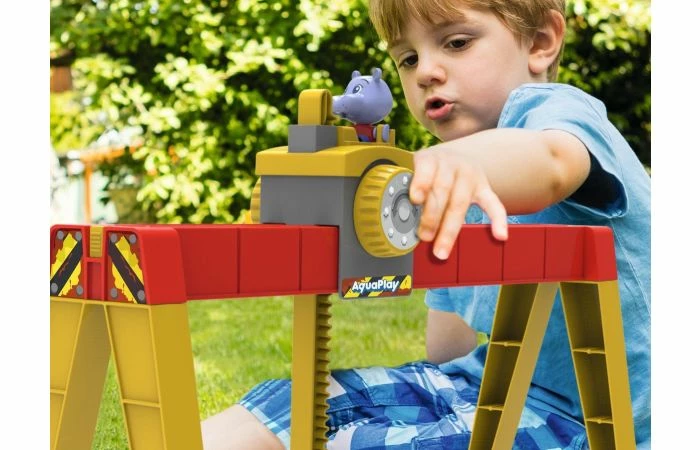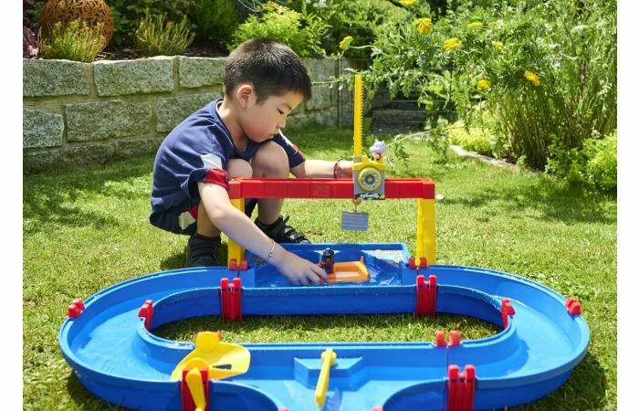 Uren speelplezier gegarandeerd met de AquaPlay ContainerPort. Kinderen vanaf 3 jaar zullen genieten van het spelen met het grote havenbassin en de verstelbare vrachtkraan, en leren hoe ze de transportboot en het amfibievoertuig moeten laden en lossen. En als de transportboot zijn lading niet snel genoeg naar zijn bestemming vervoert, bevat de set ook een slinger met grote bladen om het water in beweging te krijgen. De mobiele kraan opereert over het grote havenbekken. Al spelend leren kinderen de kraanarm te bedienen en een draaiwiel te gebruiken om containers te verplaatsen. Door de kraancabine te duwen kunnen kinderen de te lossen container over de volle lengte van de kraan van de ene naar de andere kant verplaatsen.