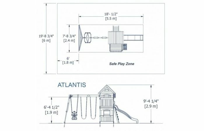 Achtertuin Ontdekking Atlantische Speeltoren (incl. Schommels). Aanbevolen leeftijd (min): 3 jaar, Aanbevolen leeftijd (max): 10 jaar, Framemateriaal: Hout. Breedte: 5512 mm, Hoogte: 2845 mm, Gewicht: 134,9 kg. Kleur van het product: Bruin