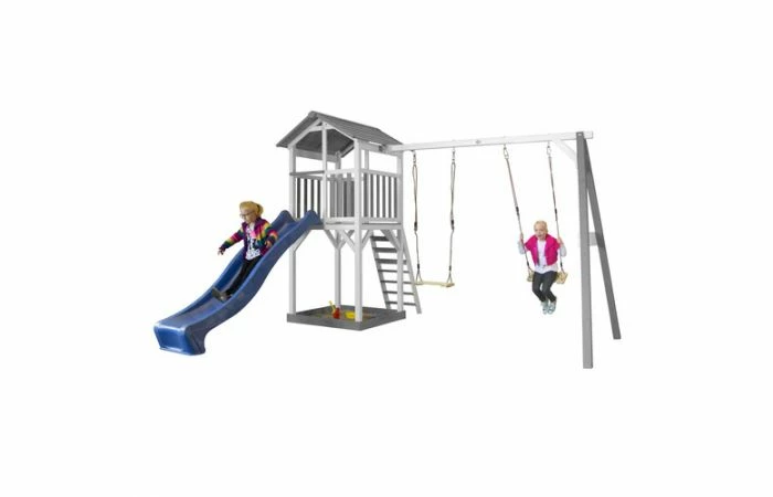 AXI Beach Tower Speeltoren met Dubbele Schommel Grijs/wit – Glijbaan in verschillende kleuren: