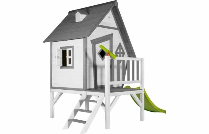 Dit houten speelhuisje van Sunny Toys heeft alle aspecten wat de Cabin ook heeft, maar is uitgebreid met een glijbaan en een veranda. Het speelhuisje is te betreden dankzij de aangebouwde houten trap. Dankzij de glijbaan kan je supersnel weer naar beneden. Het speelhuisje is uit te breiden met een verrekijker. De kleurstelling van het houten speelhuis Cabin XL is bruin – naturel. Dankzij deze kleuren heeft het huisje een rustige uitstraling en zal hij prachtig staan in elke tuin.