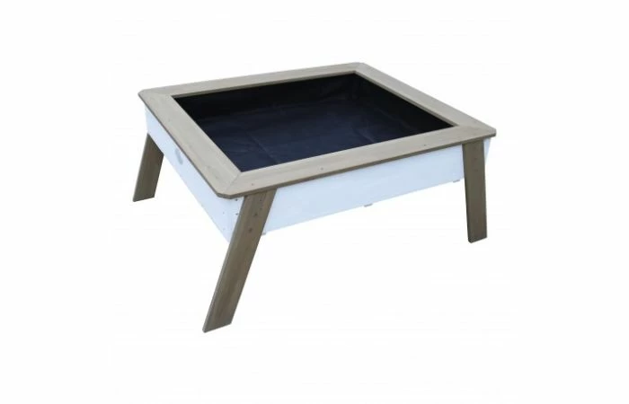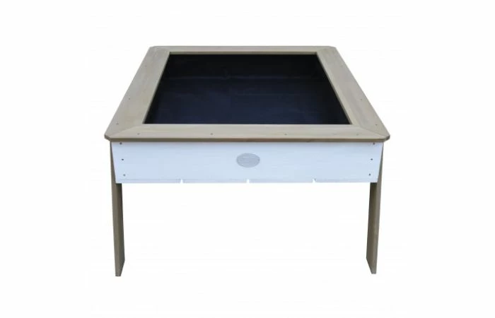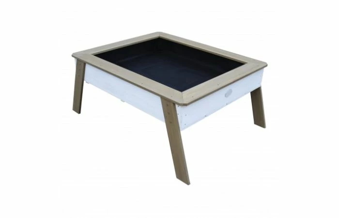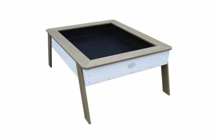 De zand- en kweektafel is gemaakt van FSC 100% hemlock hout en is daarnaast afkomstig van duurzaam beheerde bossen en daarom ook een milieubewuste keuze. Deze houtsoort splintert niet en is van nature bestand tegen weersinvloeden zoals regen en dus resistent tegen houtrot. De tafel is ook nog eens behandeld met een watergedragen beits, zonder chemicaliën. Je hoeft de speeltafel voor gebruik dus niet te behandelen.