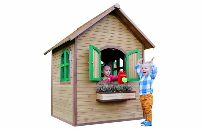 Kinderen kunnen gezellig in de tuin spelen in hun eigen Julia Speelhuis van AXI. Julia is een veelzijdig houten speelhuis met een halfronde deur en ramen. De deur heeft een brievenbus waar kinderen post doorheen kunnen gooien als ze postbodetje spelen. De bruin/groene kleuren zijn herkenbaar als de klassieke AXI producten welke al jaren enorm succesvol zijn voor jong en oud. Bij mooi weer kunnen de kinderen de ramen eenvoudig openen en genieten van alles wat er buiten gebeurt. Laat ze snel de ramen dicht doen als het gaat regenen, zo zitten ze beschut en kunnen ze heerlijk doorspelen!