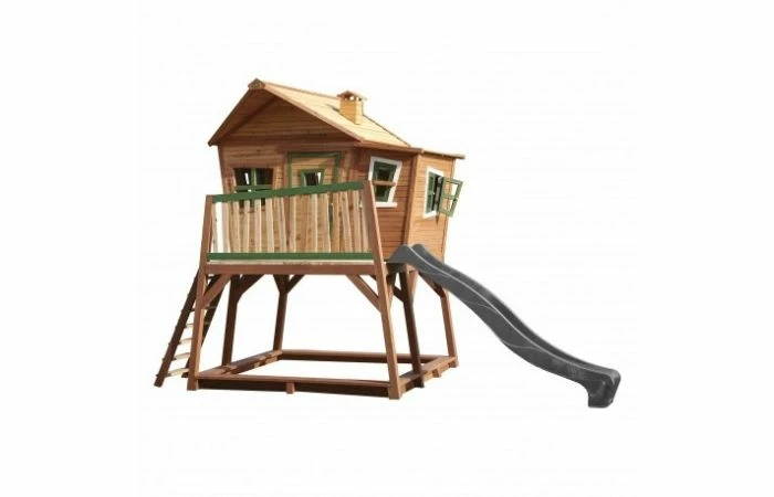 Maximaal speelplezier en urenlang vermaak! Met speelhuis Max kunnen de kinderen alle kanten op. Spelen, picknicken en zelfs logeren in het mooie grote speelhuis of lekker langs de glijbaan naar beneden suizen. Als ze daarmee klaar zijn kunnen ze zich nog uren vermaken in de enorme zandbak. Via het kijkraampje aan de achterkant speuren de kinderen de hele omgeving af. Door dit raampje kunt u ook nog een ?oogje in het zeil houden?. Met een extra accessoire zoals een brievenbusje of een verrekijker maakt u het Max nog completer.