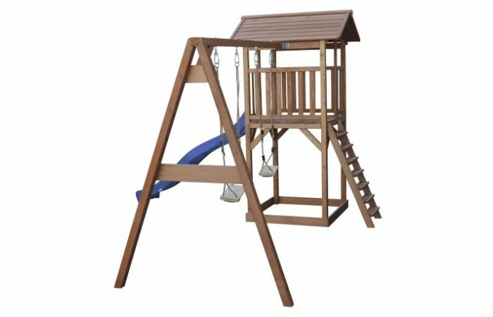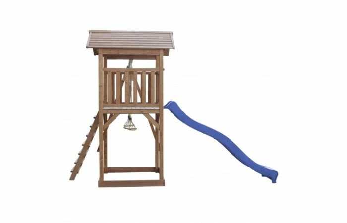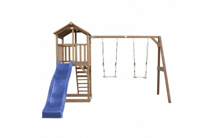 Beach Tower Speeltoren Met Dubbele Schommel Bruin Blauwe Glijbaan