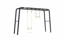 De basis voor dit concept is het sterke, robuuste frame. Deze heeft een modern en minimalistisch design en beschikt over een gepatenteerde buisverbinding. Het geheel staat stevig in de grond en vormt zo een solide basis voor allerlei toepassingen. Kies zelf of je voor de Large variant van 380 cm breed gaat of voor de Medium variant van 285 cm breed. De diepte en de hoogte van beide frames zijn gelijk. Namelijk 100 cm. diep en 245 cm. hoog. Voor de zijkanten van het frame kan je kiezen uit een trap of duikelrek of een combinatie van deze twee.