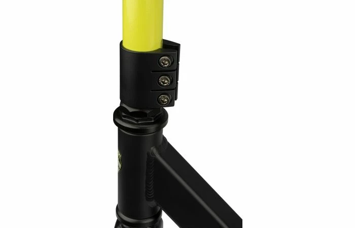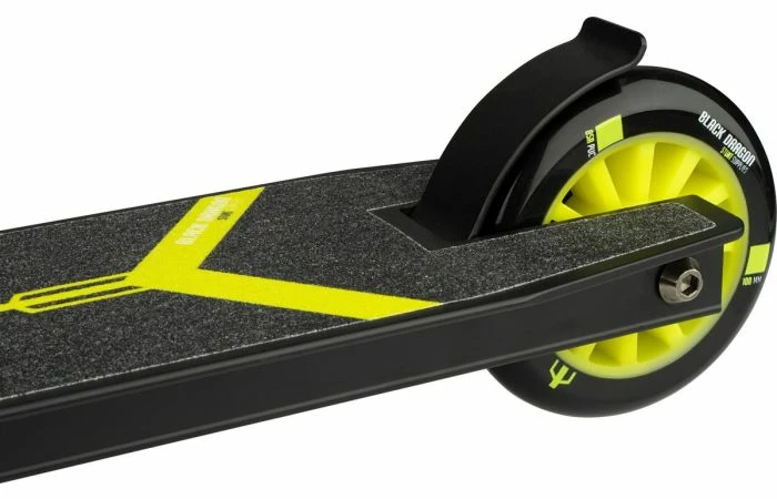 Rule the skatepark op je Black Dragon Road Rage stuntstep! De Black Dragon Stunt Scooter heeft een extra sterke rechthoekige frameconstructie met triple stangklem en is gemaakt van aluminium en heavy duty staal. De ultrasterke en uitermate lichte constructie maakt het oefenen van alle mogelijke trucs heel plezierig. Deze stuntstep vangt alle krachten op terwijl jij je uitslooft in het skatepark. De rubberen handgrepen zijn aan de uiteinden voorzien van stootbescherming en er is een stevige, metalen voetrem op het achterwiel. De step is niet opvouwbaar.