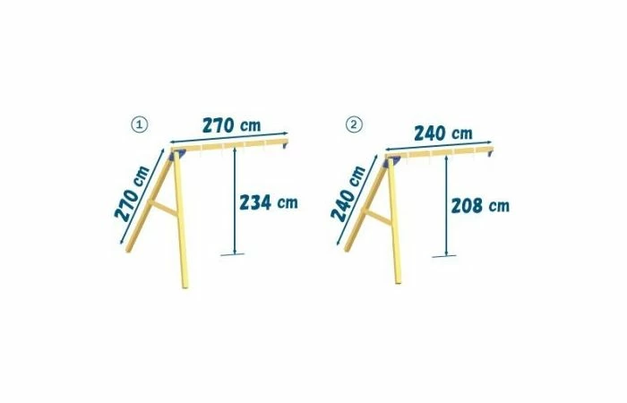 Met hetzelfde bouwpakket kunnen de twee varianten worden gebouwd. Bouw de grote @swing variant aan een speeltoren met platformhoogte 1,5 m en de kleine variant aan een speeltoren met platformhoogte 1,2 m. Enkel de lengte van de houten balken is anders per variant.