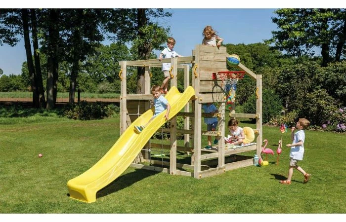 - De speeltoren wordt geleverd inclusief een glijbaan, trap, montageset en handleiding. Let op, aanbouw elementen zijn los verkrijgbaar en worden niet standaard erbij geleverd.