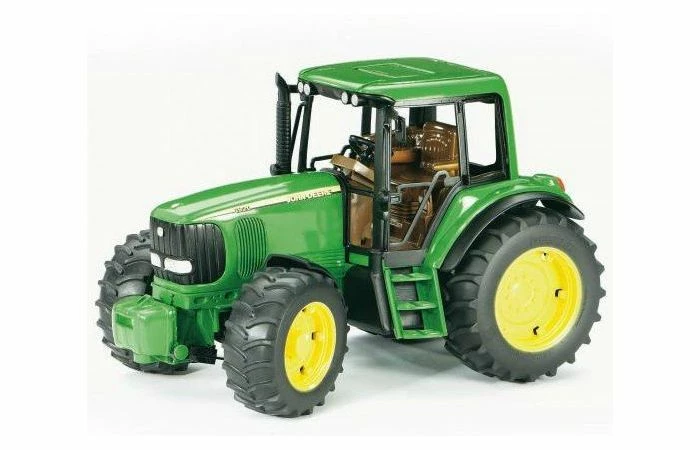 Deze robuuste John Deere 6920 tractor van Bruder is uit te breiden met voorlader en met dubbellucht banden, met het bijgeleverde stuurtje kunt u deze tractor eenvoudig besturen.