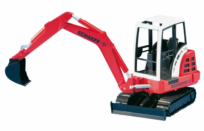 Deze Schaeff mini baggerkraan kan 360 graden draaien en met zijn rupsbanden baggert de Schaeff overal doorheen!