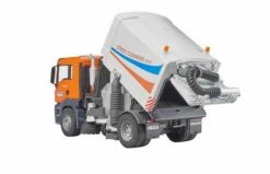 Wegreinigingsploegen zijn een onmisbare hulp voor elke gemeente en maken deel uit van ons dagelijks leven. Geen enkel ander voertuig kan zo effectief schone wegen maken. Bruder’s nieuwe wegreinigingsvoertuig illustreert tot in detail hoe deze spannende truck werkt. De MAN TGS is de perfecte partner. Dankzij het duurzame ontwerp, met krachtige motoren tot 5 pk en een bovengemiddeld laadvermogen, is deze vrachtwagen het prototype van het vaak beschreven allround voertuig. De wegveger body beschikt over twee roterende en verstelbare reinigingsborstels die ook in hoogte kunnen worden aangepast. Hierdoor u ook gebieden bereiken die moeilijk toegankelijk zijn. Een lange borstel die wordt aangedreven wanneer het voertuig in beweging is, is onder het voertuig gemonteerd om oppervlakken schoon te maken. De achterzijde beschikt over de flexibele slang inclusief zuigpijp om grotere hoeveelheden vuil schoon te maken. De afvalcontainer kan eenvoudig worden gekanteld en de achterdeur gaat open om het apparaat te legen. Het indrukwekkende afzuigsysteem van het voertuig wordt bovendien onthuld wanneer het lichaam is gekanteld. Het wegreinigingsvoertuig kan optioneel worden verbeterd door een licht- en geluidsmodule (artikel nr. 281/282). Kinderen kunnen dit product perfect combineren met de bworld gemeentelijke werknemer (artikel nr. 6213) uit de uitgebreide bworld thema wereld om het plezier en de games verder te verbeteren.
