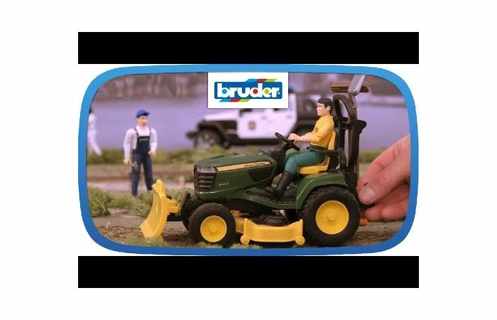 Met deze tuinman en zijn zitgrasmaaier kan je de grasvelden in jouw bworld netjes houden. Voorop de grasmaaier zit een blad, waarmee je dingen bij elkaar kunt schuiven. De bijbehorende aanhanger kan je achter de grasmaaier vastmaken, zodat je makkelijk van alles mee kunt nemen.