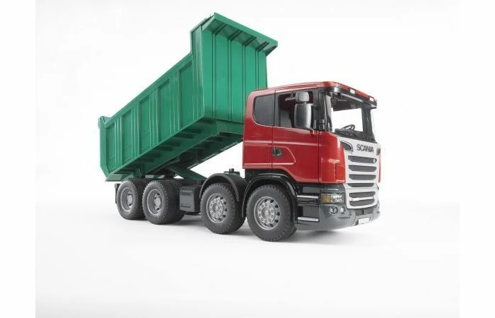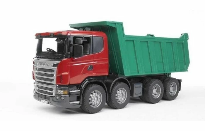 De assen van deze Scania kiepwagen bewegen mee tijdens het rijden, zo worden zware vrachten veilig vervoer.