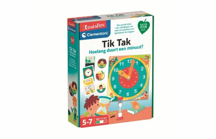 Clementoni leerspel Hoe laat is het? Een grote klok, heel veel geïllustreerde kaarten en een zandloper om het concept van tijd te begrijpen. Leer op een makkelijke en leuke manier de tijd af te lezen! Met de kaarten met verschillende tijden in digitale en analoge vorm leert het kind om de tijd aan te geven op de analoge klok door de wijzers voor de uren en minuten te verplaatsen. Het kind begrijpt het concept van tijdsduur door met de zandloper de minuten te tellen die hij of zij nodig heeft om kleine dagelijkse bezigheden uit te voeren. Geschikt voor kinderen van 5 tot 7 jaar.