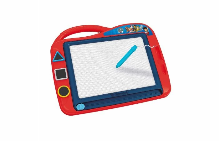 Een speciaal tekenbord waarop kinderen tekeningen kunnen maken en gemakkelijk weer kunnen verwijderen. Voor eindeloos tekenplezier! Bevat drie stempels met geometrische vormen om je tekening te versieren. Geschikt voor kinderen vanaf 4 jaar.