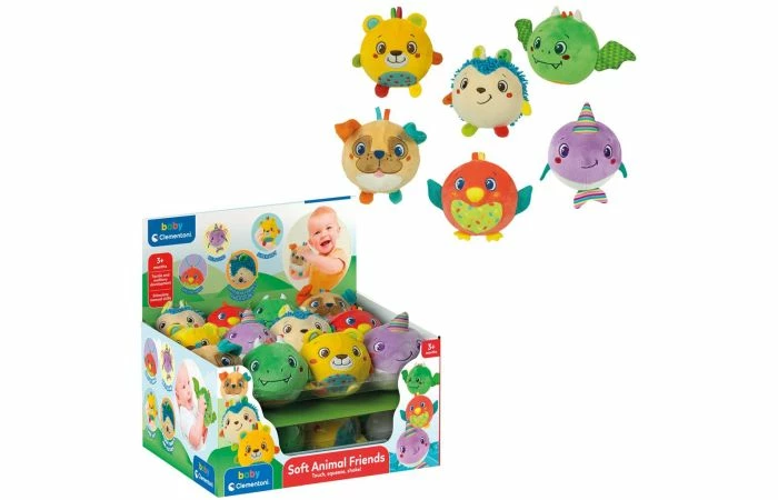 De diertjes zijn verrijkt met ritselende elementen, diverse stoffen en een rammelaar binnenin om kinderen te vermaken en hun aanrakingszin en gehoor te stimuleren. Dankzij de opening zijn ze makkelijk op te hangen en mee te dragen. De hond, beer, egel, vogel, narwal en draak zullen snel de beste maatjes van elk kind worden! Wordt geleverd in display van 24 stuks. Geschikt voor kinderen vanaf 3 maanden.