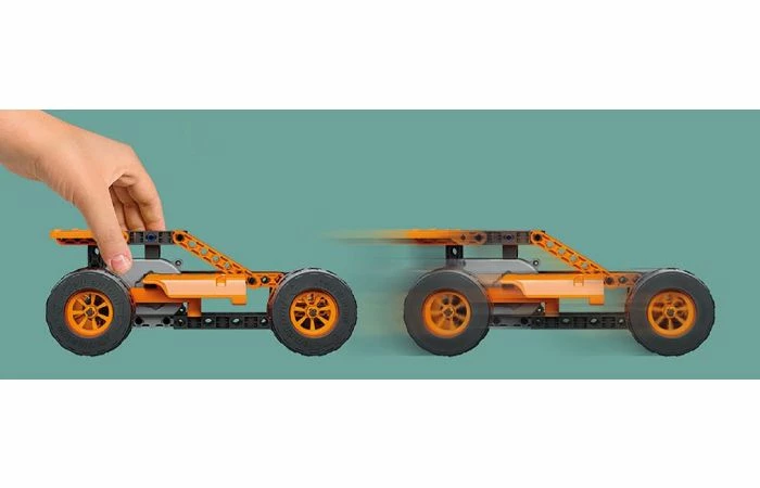 Ga lekker racen met deze Pull-Back Buggy en Quad! Met meer dan 100 onderdelen, waaronder een pull-backmodule, panelen en crossbanden om twee fantastische modellen te bouwen en nieuwe spannende avonturen te beleven! Bedien het pull-backmechanisme en kijk hoe je voertuigen op hoge snelheid wegschieten! Een perfecte speelset om de handvaardigheid, het logisch denken en de creativiteit te ontwikkelen. Download de gratis app Mechanics Laboratory om je modellen op een gemakkelijke, leuke manier te bouwen met behulp van interactieve 3D-animaties. Wordt geleverd in full-colour doos. Geschikt voor kinderen vanaf 8 jaar.