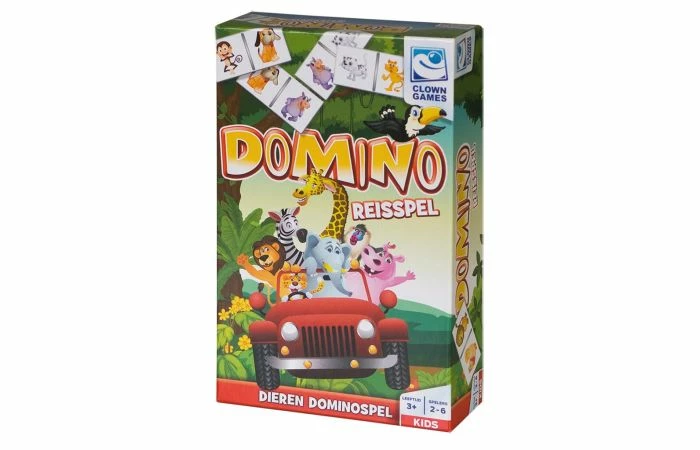 Clown Games Domino reisspel. Het bekende spel, boordevol leuke dierenafbeeldingen! Wie als eerste alle kaartjes heeft aangelegd, heeft gewonnen. Voor 2-6 spelers vanaf 3 jaar.