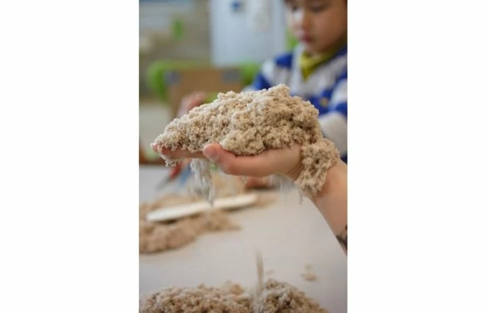 Doordat er was aan dit bijzondere zand is toegevoegd kruimtelt het niet en droogt het niet uit.