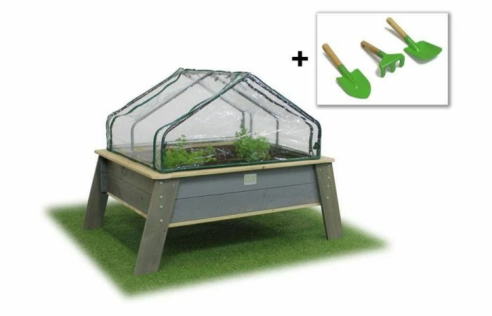 De EXIT Aksent Kweektafel is gemaakt van duurzaam geproduceerd hout en in een strak design uitgevoerd. En in de rustige kleuren grijs en naturel staat het ook nog eens mooi in de tuin! De EXIT Aksent Kweekkas (overkapping) bestaat uit een stevig metalen frame met kunststof koppelingen die is overspannen met een sterke transparante folie. De EXIT Aksent Kweektafel XL Deluxe is inclusief een kweekkas overkapping en een set EXIT Kinder Tuingereedschap. Lekker je eigen tuintje onderhouden is nog nooit zo simpel geweest!