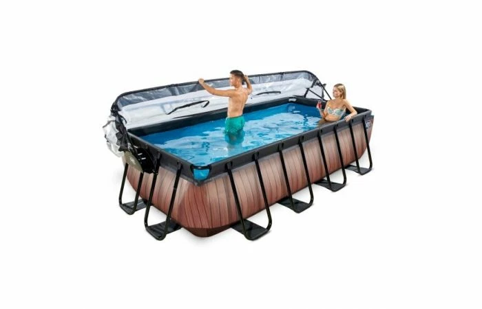 EXIT zwembad 400x200x100cm met overkapping en zandfilter- en warmtepomp grijs of bruin