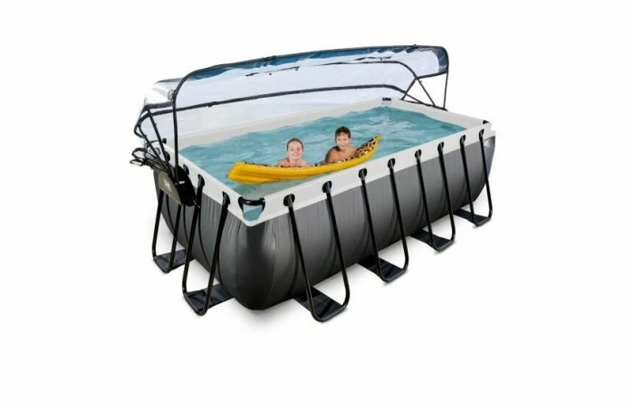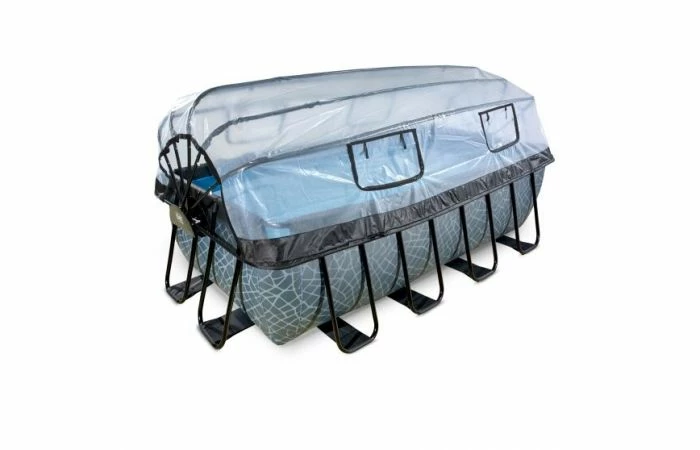 Het EXIT zwembad 400 x 200 x 122 cm is een rechthoekig grijskleurig frame zwembad met overkapping. Dit zwembad is standaard voorzien van een zandfilterpomp en een zwembadtrap, waarmee je veilig het zwembad in en uit kunt stappen. Op zoek naar verkoeling? Het EXIT Stone zwembad is maar liefst 122 centimeter diep waardoor je echt onder water kunt duiken. De frame zwembaden met overkapping van EXIT Toys zijn multifunctioneel, duurzaam en dé perfecte oplossing voor wisselvallig zomerweer!