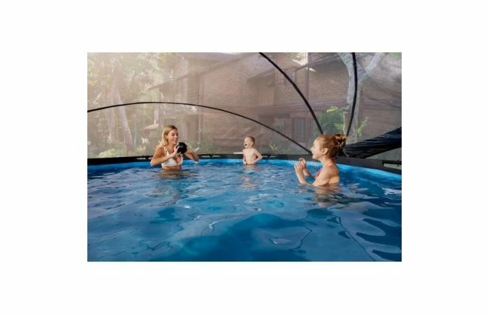 De overkapping is snel aan het frame van het zwembad te bevestigen en eenvoudig te openen en sluiten door het unieke scharniermechanisme. Binnen no time zwem jij in je eigen binnenzwembad! Onder de overkapping heb je super veel ruimte en dankzij het transparante zeil mis je niets van wat er buiten het bad gebeurt. De kap kan zelfs half open blijven staan, zodat je eenvoudig in en uit het bad kunt stappen. Met de zwembad overkappingen van EXIT Toys heb je zwemplezier in weer en wind!