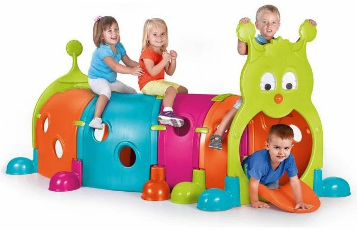 Speel-/kruiptunnel die met de verstelbare en kleurrijke modules in vijf verschillende vormen gebouwd kan worden.