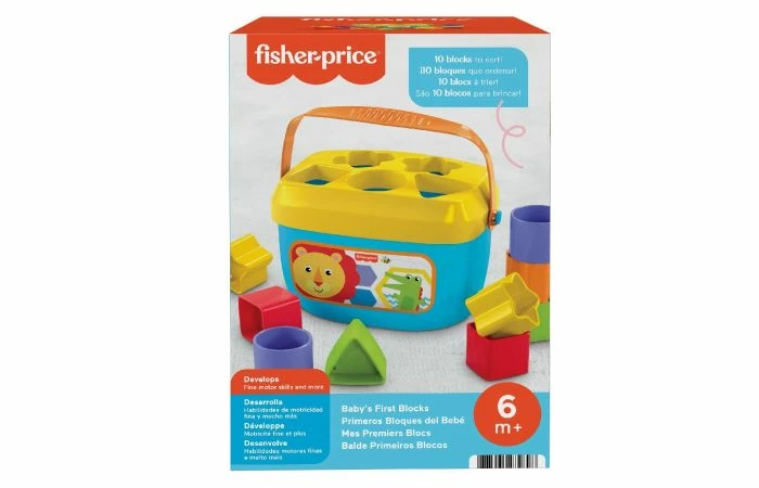 Emmer vol Baby’s Eerste Blokken. Baby kan met deze makkelijk vast te pakken, vrolijk gekleurde blokken kennismaken met kleuren en vormen door de blokken in de openingen in de emmer te doen, op te stapelen of via het sorteerdeksel te sorteren. De emmer is voorzien van een handige draaghendel zodat je Baby’s Eerste Blokken overal mee naartoe kunt nemen! Geschikt voor kinderen vanaf 6 maanden tot 3 jaar.
