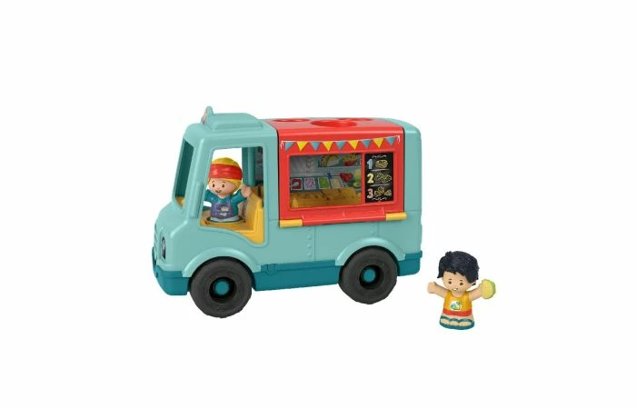 Fisherprice Little People Foodtruck. Je bestelling graag! Peuters beleven uren heerlijk speelplezier wanneer ze een bestelling plaatsen, gerechten bereiden en serveren met de Little People Service hamburgertruck. Druk op de knop of op de bestuurdersstoel van dit speelgoed met muziek en luister naar de verschillende liedjes, geluiden en zinnen voor nog meer speelplezier. De hamburgertruck heeft een keuken en een uitklapbaar eetgedeelte. En met de twee Little People figuren kun je eindeloos veel leuke verhalen bedenken! Wordt inclusief 2 AA-batterijen geleverd in try-me verpakking. Geschikt voor kinderen vanaf 1 jaar.