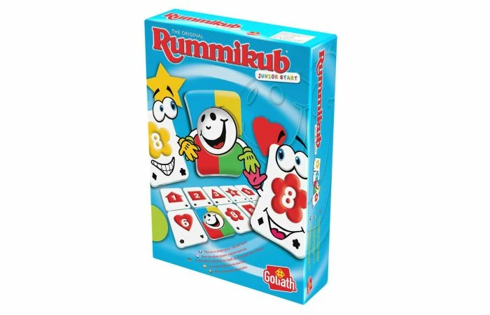 De kinderversie van het klassieke Rummikub-spel. Er zijn drie spelniveaus, zodat je de moeilijkheidsgraad geleidelijk kunt opvoeren. Het doel van het spel: als eerste alle stenen op jouw rekje uitspelen. De stenen zijn er in 4 verschillende kleurreeksen: rood, blauw, geel en groen. Elke set bestaat uit de nummers 1 tot en met 10. De spelers moeten steeds een set van 3 (of 2) stenen voor zich leggen. Je kunt ook stenen aanleggen bij de sets die al op tafel liggen. De eerste speler die geen stenen meer op zijn rekje heeft, wint. Rummikub voor kinderen ontwikkelt nummer- en kleurherkenningsvaardigheden, leert kinderen hoe ze nummerreeksen moeten leggen en bevordert het logische denkvermogen. Deze eerste Rummikub-set is slim vormgegeven, met vormen die kinderen helpen hun bewegingen zelf te corrigeren.