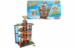 De Hot Wheels City Mega Garage speelset is een parkeergarage met 4 verdiepingen aan speelplezier! Maar liefst 70 cm hoog. Inclusief één voertuig (schaal 1:64), en je kunt er meer dan 60 auto’s in neerzetten. Dankzij de lift in het midden van de garage kun je auto’s verplaatsen en ze naar de baan leiden. Kinderen laten de lift bewegen met een handslinger en bepalen of auto’s een nieuw avontuur gaan beleven, of op hun parkeerplaats worden neergezet en tentoongesteld. Door de verschillende verbindingspunten op de basis kunnen kinderen de speelset aan andere Hot Wheels sets koppelen (afzonderlijk verkrijgbaar). Er zijn 4 extra verbindingspunten waarmee oranje baandelen aan de speelset kunnen worden verbonden voor ultieme stunts en bouwplezier. Geschikt voor kinderen vanaf 5 jaar.