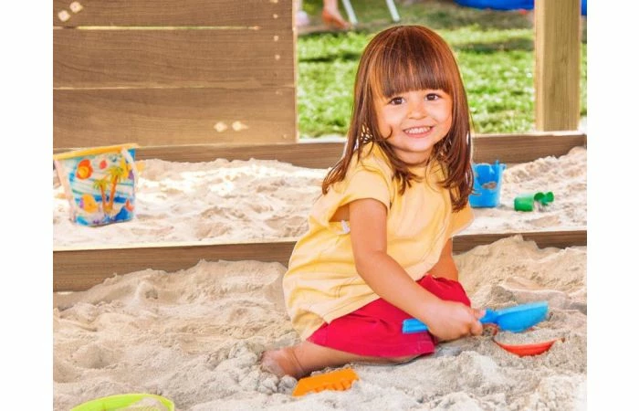 Gecertificeerd voor commercieel gebruik, het ideale houten speelhuis met schommelaanbouw voor scholen, een kleine kinderopvang of vakantiepark.