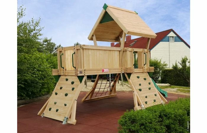 De speeltoestellen moeten volgens de Europese Standaard op een valdempende ondergrond geplaatst worden, bijvoorbeeld rubberen tegels. Voor het veilig plaatsen van het toestel op een niet verharde ondergrond, raden wij u 3 Anchor Sets aan. U vindt de Anchor Sets onder Bijpassende producten. Voor het plaatsen op verharde ondergrond is extra hard-ware nodig, bijvoorbeeld chemische ankers of keilbouten.