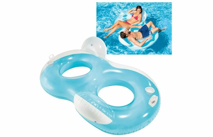 De Intex Double Pillow back lounge is de perfecte dubbele stoel om heerlijk mee tot rust te komen in het zwembad of in het water. Deze stoel zit zeer comfortabel en heeft een neutraal blauw design. Bevat bekerhouders om een drankje in te kunnen zetten.