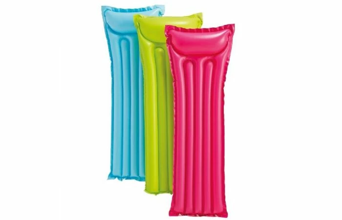 Economy luchtbed, met een afmeting van 183 x 69 cm, vervaardigd van vinyl en met 2 luchtkamers. Eenvoudig luchtbed, 3 assorti in de kleuren blauw, groen en oranje.