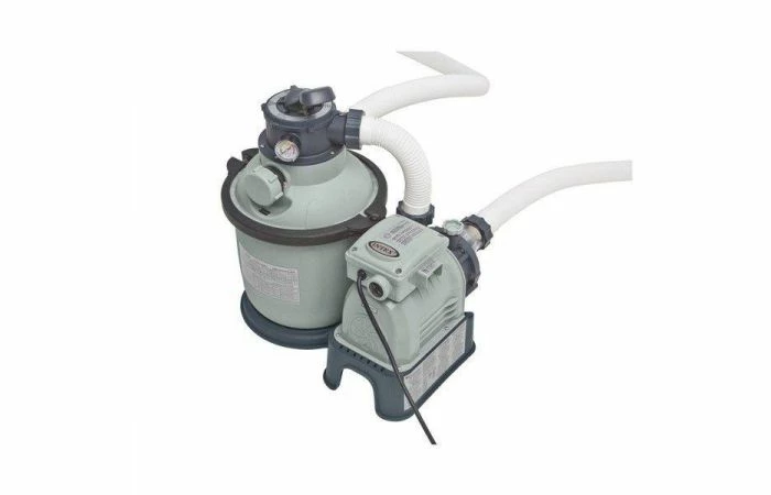 Deze Intex zandfilterpomp 220–240 volt zorgt voor een nog fijnere reiniging dan de reguliere patroonfilters. De werking van een zandfilter kan vergeleken worden met de natuurlijke filtering van grondwater in de duinen. Bij een zandfilterpomp wordt het water krachtig door het zand in de filter gepompt. Hierdoor worden alle onzuiverheden die een gtotere omvang hebben dan de zandkorrel tegengehouden. Het vuil, zoals algen, zand en ongedierte blijft achter in het zandfilter. De filtering vindt plaats in de filtertank van de pomp. Deze tank biedt plaats voor 12 kg zand, en heeft een doorsnede van 25,4 cm. Het zand dient éénmaal per 3 jaar vervangen te worden. Het filter heeft een timerfunctie, waarmee de tijd kan ingesteld worden wanneer het bad gefilterd moet worden, maar kan handmatig bediend worden. Het filter kan 4000 liter water per uur filteren. Wordt geleverd met duidelijke handleiding en verpakt in doos.