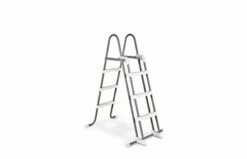 De zwembadtrap voor zwembaden met een framehoogte tussen de 85 en 105 centimeter is een uitstekend hulpmiddel om op veilige wijze het zwembad in en uit te klimmen. De trap heeft een railing waaraan de kinderen zich vast kunnen houden en de treden zijn voorzien van anti-slip, waardoor ze niet kunnen uitglijden als de trap nat is. En vanaf de buitenkant van het zwembad is de trap eenvoudig los te maken, zodat de allerjongsten niet zomaar in het zwembad kunnen klimmen.