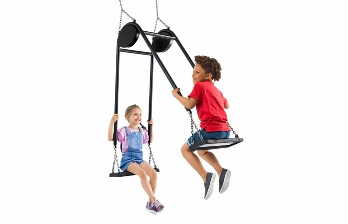 De familieschommel ‘RAXI’ is naast de zwarte en lime versie ook verkrijgbaar met een volledig zwart frame. Het frame bestaat ook uit twee aparte helften, die zijn gemaakt van gepoedercoate stalen buizen. De familieschommel is verkrijgbaar met twee rubberen ‘curve XL’ schommelzitjes uit de KBT-collectie. Een uniek voordeel van deze schommel is de mogelijkheid om zowel de combinatie van volwassene en kind als de combinatie van twee kinderen te dragen. Gegarandeerd plezier voor alle leeftijden. Het wordt geleverd in een standaard economische verpakking en ongemonteerd.