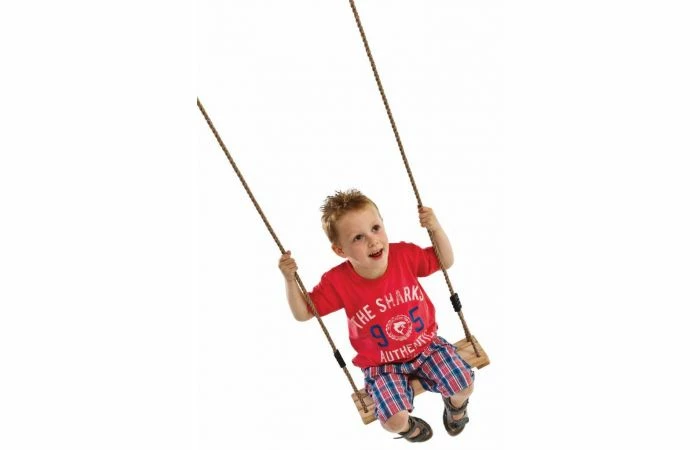 Het hardhouten schommelzitje geproduceerd door KBT is ideaal als onderdeel voor een meer natuurlijk ogend aanbod van speeltoestellen.