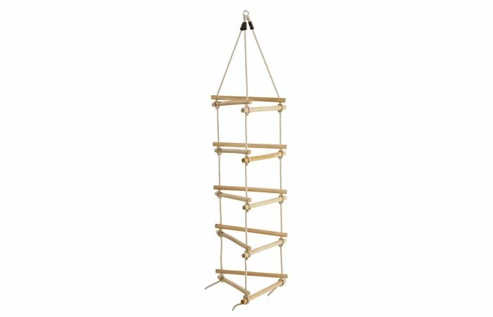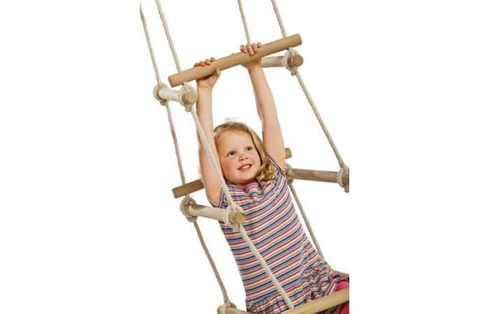 Dankzij de ‘door en rondom’-knopen draaien de sporten niet. De ringen en stelachten zijn vervaardigd in gegalvaniseerd staal. De lassen op de touwen bestaan uit zwart PP.