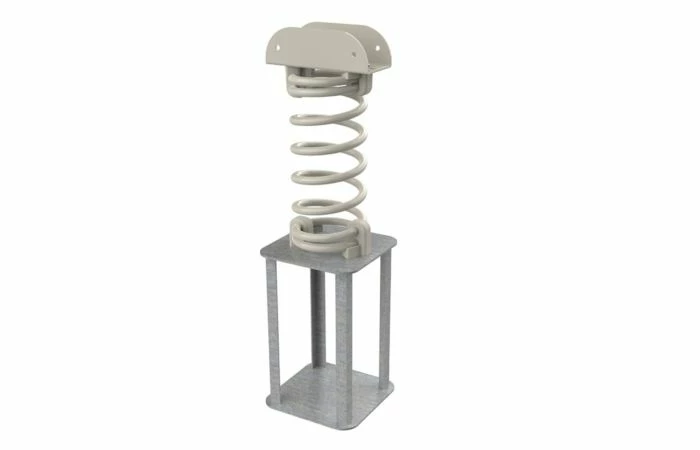 Er zijn twee bevestigingspunten beschikbaar: één grondanker dat in gegoten beton moet worden geplaatst of een plat anker dat op beton moet worden geschroefd. Beide zijn gemaakt van verzinkt staal.