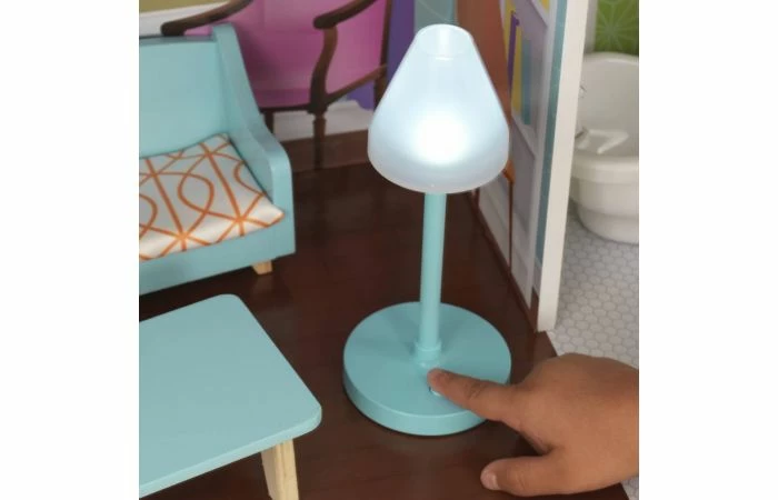 Met drie etages en zes zorgvuldig gedecoreerde kamers is het meer dan 1,20 m hoge Avery poppenhuis een prachtige aanvulling op elke speelruimte. De meegeleverde 15-delige accessoireset bestaat uit een lamp die aan kan, een oven met licht en geluid en een toilet dat je kunt doortrekken. De poppen kunnen met de lift van de eerste naar de tweede verdieping. Als je de garagedeur opendoet, vind je nog meer ruimte om in te richten en om in te spelen. Er is zoveel te zien in dit huis dat kinderen er met hun poppen tot 30 cm urenlang mee zullen spelen.