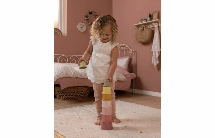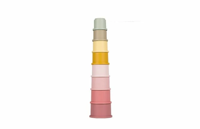 1,2,3 hoe hoog wordt de toren?! Deze set met bekers daagt je peuter uit om ze één voor één op elkaar te stapelen. Hoe groot zal de vreugde zijn als de toren helemaal staat! En hoe leuk is het om de toren weer om te gooien! Uren speelplezier gegarandeerd. Met de vier vrolijke tinten zullen de bekers je kleintje zeker vermaken. De 8 stapelbekers hebben een nummer aan de bovenkant en passen gemakkelijk in elkaar om te voorkomen dat de toren te snel valt. Je kleintje leert over cijfers en ontwikkelt fijne motoriek. Stapel en maak de toren in de box, op de vloer of in de badkuip of zandbak. Dankzij het veelzijdige materiaal kan het overal worden gebruikt. Plaats de kleine bekers in elkaar om ze eenvoudig op te bergen. De toren bestaat uit 8 stapelbekers, variërend in diameter tussen 6 en 9,5 cm en de toren is in totaal 43 cm hoog als je alle bekers op elkaar zet. Geschikt voor kinderen vanaf 6 maanden.