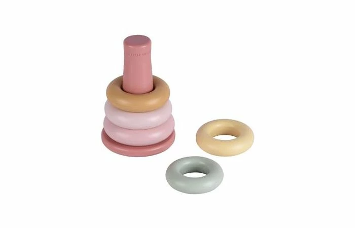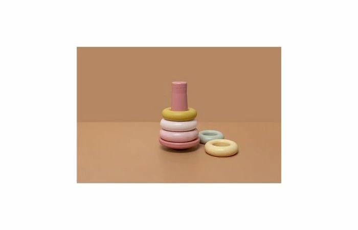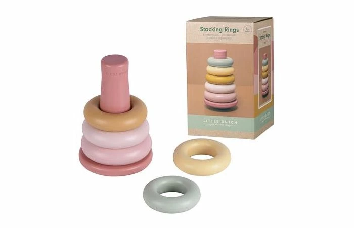 Laat je kindje ringen sorteren en stapelen, met deze supermooie stapelringen van Little Dutch. Dit speelgoed is uitgevoerd in prachtige kleuren, die mooi in je interieur passen: diverse tinten roze, okergeel en zachtgroen. Er zijn 5 verschillende formaten ringen om mee te stapelen, variërend in diameter tussen 8,5 en 13,5 cm. Totale hoogte van het artikel: 20,5 cm. Extra uitdaging: de basis is half rond, waardoor hij een beetje wiebelt op de grond. Goed voor de ontwikkeling van de motoriek! De stapelringen zijn gemaakt van ABS, wat gemakkelijk vast te pakken is voor kleine kinderhandjes. Geschikt voor kinderen vanaf 6 maanden.