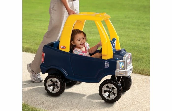 Deze ruime loopauto in pick-up truck stijl is ideaal voor toekomstige bestuurder die graag door de tuin worden geduwd. Het 88 cm hoge dak is de juiste reikhoogte voor volwassenen. Zodra ze groot genoeg zijn, kunnen de kinderen hun voeten op de grond zetten, aangezien de bodem kan worden verwijderd, en de truck zelf aansturen. Richting hun volgende grote avontuur. De truck heeft een dieplader met naar beneden klapbare achterklep, robuuste offroad-wielen, een tankdop die geopend kan worden en een stuurwiel met elektrische claxon. De bestuurdersdeur kan geopend en gesloten worden. De loopauto is geschikt voor kinderen van 1,5 tot 5 jaar.
