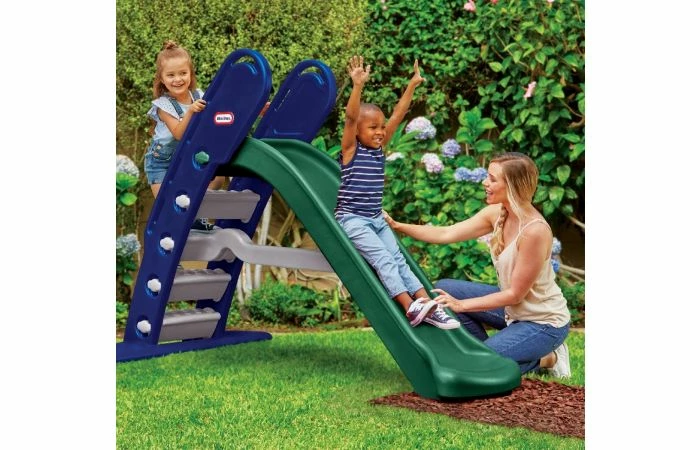 Deze Little Tikes Jungle glijbaan is groot genoeg om kids urenlang speelplezier te laten beleven, maar kan toch heel eenvoudig worden opgeborgen! Ideaal voor peuters, met makkelijke treden om te klimmen, een brede basis voor stabiliteit en een flauwe helling. En als je kleintje klaar is voor ander speelgoed, dan maakt de Easy Store zijn naam waar en is makkelijk op te vouwen en op te bergen. Lengte van de glijbaan: 180 cm. Met geïntegreerde grepen ter ondersteuning en voor de veiligheid. Deze glijbaan is uitgevoerd in de mooie kleuren donkerblauw, groen en grijs.