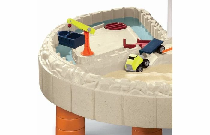 Deze Little Tikes bouwplaats zandtafel maakt het mogelijk dat meerdere kinderen het zand en water kunnen verkennen. De zandtafel wordt geleverd met een grote interactieve schroefkraan en een set vrachtwagens, poorten en bruggen, havencontainers en een waterwiel voor een leuk rollenspel. De zandtafel heeft twee speelruimtes, een voor creatief zandspelen en de andere voor interactief waterspel. Op de tafelblad staat een parasol, waardoor je kinderen veilig in de schaduw kunnen spelen en heerlijk koel blijven. De tafel is geschikt voor kinderen van 2 tot 6 jaar.